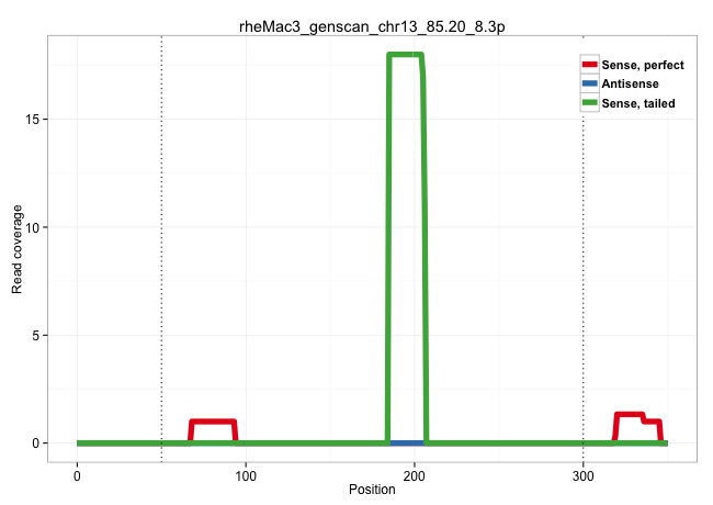 | CAGGGGTGCTTGGAGTTATTTCCCAGAGGGAACTTTGACTGTCGCCTGCCTTGCCTAGGGCTGCAGGGTGCAAGGACTGACTTGTGTGCCAGGTGAGGGTATCTTCTGCACCTGAGTGGAAACTGAATCTGAGATGACTCTTTCCCCACTTTGGTGTCTCTACAGAGACCCACATTCCTGGGATCCCTGTATTGTACACACTGGGGTCCCCATACCTCTCCGAGGCCTCCCTGTTTGCCTGGGGCTGGTTCCTGTCCAGTGGGGGATGTCACTGATGGTGCCCCCACCCCATTCCCACAGTGTGTACCTGCTGCTCCACCTGCAGGACCTGGAAAGGTGAGTAAGCAGCC ........................................................................................................................................................................................................((((((.......(((..(((.((((..........)))).)))..))).........(((((((....(((.....))))))))))......))).))).................................................. ........................................................................................................................................................................................................201................................................................................................300................................................ | Size | Perfect hit | Total Norm | Perfect Norm | SRR553605(SRX182811) source: Frontal Cortex. (Frontal Cortex) | SRR553606(SRX182812) source: Kidney. (Kidney) | SRR553581(SRX182787) source: Testis. (testes) | SRR553579(SRX182785) source: Heart. (Heart) |