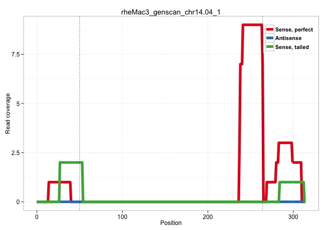 | TCCTTTGTCCCTGGTAGAAATCATTCTTCATGTAGTTAGACAGATGACTGGTAAGTCTTACTTTGTTTTATAAAGGAGTAGATCCAAGTGGTAGTTAAAATTATCTTGAAATATAAGTTAACTGAACTTTTGTGCTTTCTGTATCCAATATTGTATTTTTATTCTACTTTATGGTCAAAACCTAAAGATTATCCTACCTAAAGATGTCTTGGTTAGTAGAAACCAGTCTGTTGATGGTCCTTCTGACTGTTCTTTCTTTTCCAGATCCTAATGTGGCTCTTACTTTCCTGGAAAAGACTCGTGAGAAGGTAAAT ......................................................................................................................................................................(((((.(((....))))))))............(((((.....(((((((.((..((((.((....)))))).)).))))))).....)))))....................................................... ....................................................................................................................................................................165................................................................................................264................................................ | Size | Perfect hit | Total Norm | Perfect Norm | SRR553578(SRX182784) source: Cerebellum. (Cerebellum) | SRR553581(SRX182787) source: Testis. (testes) | SRR553577(SRX182783) source: Frontal Cortex. (Frontal Cortex) | SRR553605(SRX182811) source: Frontal Cortex. (Frontal Cortex) | SRR553579(SRX182785) source: Heart. (Heart) | SRR553580(SRX182786) source: Kidney. (Kidney) | SRR553607(SRX182813) source: Testis. (testes) |