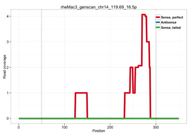 | ACTTCCTAAGCGGAGCCATGTCTGGTAACGGCAATGCGGCTGCAACGGCGGTGAGTGCTGAGCCGGTGACCAGCACACTTTGGGCTTCTGGACGAGCCGTGCAGCAATTGGCCCCAGGTTGCCATCCTCAGTCGCTATTGGTCAGAACGGCTTTTTTTTTTTTTTTTTTTTTTTGGTCCGAATAGTTTTTAAAGGGCCAGTAGTTCTGTTGCCCTCCGGAAGGAATGGGGAAATCAAGAGAGCGGTGGTGCTGGGTTAAGAGTGGAAGGATTGTCTGGAACAGAACCCCGGTCCCTGCGGGCATCTGGGTGGGATTCCCATCAGGCCTGGGATGCACGGCTCTAGATTTA ..................................................................................................................................................................................................................................................(((.(((.(((..((.(((............)))))..))).))))))............................................................ ...............................................................................................................................................................................................................................................240.................................................292........................................................ | Size | Perfect hit | Total Norm | Perfect Norm | SRR553605(SRX182811) source: Frontal Cortex. (Frontal Cortex) | SRR553581(SRX182787) source: Testis. (testes) | SRR553577(SRX182783) source: Frontal Cortex. (Frontal Cortex) |