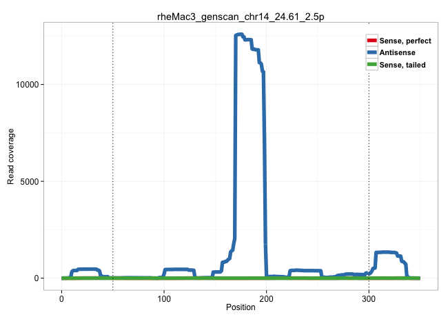 | ATGCTCTTTTACCCTCTCTCAACCAGGCGACTGCAGCAGATTTGGAGAGAGTAAGGACTCACAATTCCTTCCTGCCTCCTACTCCTCATTTTCTCCCCTCCCCTCCTTTTCCTGTGTTTGTCCACGTGGAAGGGAAAGTGGGCAGCTGGCAGTGTTTACCTCTCAGGAGTGCCCTCACATTGTCTACGACCTAGTGCAAACCCCTTGTCTCGGAATCACTTCAACTCTTCATAAGCTGAGGTACCTACTTTTTAGCAAGTAAGGGCACTACATGCAAGTTGGGCAAGTTCAGCTCAGGAAGTGTGATGCTTGGGCTCTAAATCCTTGATGGAGGACACAAAGATCCCTGG .........................................................................................................................................................................................................((((((.((..(((....)))............(((((((........))))))).))))))))...........(((((((....)))))))........................................................ .......................................................................................................................................................................................................200...........................................................................................294...................................................... | Size | Perfect hit | Total Norm | Perfect Norm | SRR553607(SRX182813) source: Testis. (testes) | SRR553581(SRX182787) source: Testis. (testes) | SRR553606(SRX182812) source: Kidney. (Kidney) | SRR553605(SRX182811) source: Frontal Cortex. (Frontal Cortex) | SRR553578(SRX182784) source: Cerebellum. (Cerebellum) |