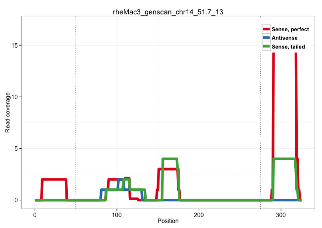 | TTCCAGGCATGAACATGGTTCACGAGAGAGTCTCCATCCGCCCCCGCAACGTGAGCCTCTACCCTTCACTCCCCTCTTTCCCCATCATCCTAGTCTCTGCATGAGCTTCTAAGGGCAGAACTCCAGCTGATGTGTATATGTGGAGGGGATATCATATGAGAAAGCCCTGTAGGTCTAGGGAAATCTAAGGACCCCCATTCCTGGGATAGATCCCTCTTTGGGGTGGTCATGGTGCCAAAGGCCTGGGCCTGGCTCAGGTGAGGCTGCCCTCCCAGGAGCATGAGACACTGCTAGCACGCTGGCAGAATAAGAACACGGAGAGTAT .................................................................................................................................................................................((((........(((((((......((((....))))......))).))))..((((((....((((((((...))))))))..))).))).)))).................................................... ...............................................................................................................................................................................176................................................................................................275................................................ | Size | Perfect hit | Total Norm | Perfect Norm | SRR553581(SRX182787) source: Testis. (testes) | SRR553607(SRX182813) source: Testis. (testes) | SRR553579(SRX182785) source: Heart. (Heart) | SRR553578(SRX182784) source: Cerebellum. (Cerebellum) |
