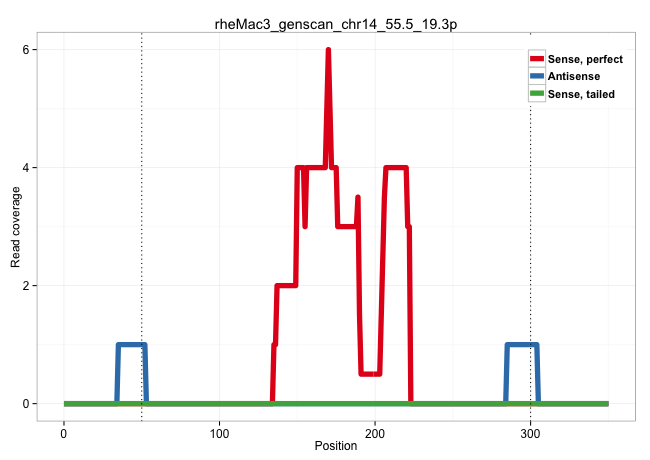 | GGGGAGAATCCGAGTGGCGGCACCACCCTTGCCTAGCATTCAGGACCACCCACGCAAGGGAGGAGCCAGCACCGTCACTAGTTACTAGGCAGAGGGTTGGTGGTGGACTATAGGGTTCATGTGATCTGTCACATGACAGCAGATCTGCGGAAGGGCAGAATGGGACTCCAAGCCTGGTGAGAAATTGAGAGGGCTGGGGAGAAAGGGATCACGTTGGGGGGAGCATACATTGGGAGGGTGGGAACACAAGGACAATGTAGCTCCCACTGAAACCCACCTGCTGCCCTTACAGCCTCCTAGGGCTCTTTGCCCTCATCCTCTCTGGCAAATGCAGTTACAGCCCGGAGCCC ...............................................................................................................................................(((((......))))).(((....))).((((..(((....)))...))))............................................................................................................................................................ ....................................................................................................................................133..........................................................194.......................................................................................................................................................... | Size | Perfect hit | Total Norm | Perfect Norm | SRR553578(SRX182784) source: Cerebellum. (Cerebellum) | SRR553577(SRX182783) source: Frontal Cortex. (Frontal Cortex) | SRR553580(SRX182786) source: Kidney. (Kidney) | SRR553606(SRX182812) source: Kidney. (Kidney) | SRR553605(SRX182811) source: Frontal Cortex. (Frontal Cortex) |