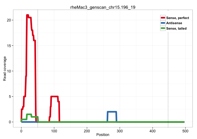 | TTGGAACCTTCAGACGAAAGAGATTGTACAGAAACTACAAGGCCACACAGGTGAGGGCCTGTGCTCCCGCAGCCACGGCTGCCTGTTGATGTGAGGACAGTTCCTGTAGGTGAAGCGTGGTCTGCCCGTAGGGTGCCGTCGTCTTCCCCTTCCCTCCTCAGCCCTCCGCTGGCCCCATTGAGGAGCCGCTGCTAAGAGCTCTTGCCCAAGGCATGGAGCTGGTCACTGTGCTGCCGACTCGGACCCAGGGCTCCTGTCTTGAACCCTGTTTCTTCCTGTTCTGCCGGGTATTCTGGTCCGGAAGGTGTGTGTGGCTGTGGGACTTTAGGTGGGTGTAGCGTGTCCCACTTCACGGCGAGCTCCGTTTCCTGGGCCGGGGACAGTGAGGTCATCGCTGCCCCATCCTGGAGGCTCTGGCTCCTTTCGATTACCTGTTCCCTCTCCCAGAGAGACCCCTGCTGCATGCAGGCCTAGTGGGCTCCACAGCGGTGCTGGTT ................................................................................................................................................................................................................................................................................................................................................................(((.(((((..((((((.(((..((((.((((((.....)))))))))).))).))))))...)))))...)))....................................................................... ...........................................................................................................................................................................................................................................................................................................................................................348................................................................................................447................................................ | Size | Perfect hit | Total Norm | Perfect Norm | SRR553581(SRX182787) source: Testis. (testes) | SRR553607(SRX182813) source: Testis. (testes) | SRR553578(SRX182784) source: Cerebellum. (Cerebellum) |