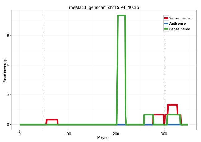 | GGAGAGAATTTGACAAGCAAGTATTCATTTTGAACTGAAGCCCCCAGGGCAAGTCGTGGTTTGGAGAGAATTTGACAAGTAAGTATTCATTTTGAACCGAAGCCCCCGGGGCGCAGCGCGGGTAGACCGAAGGCTGCGTGCTTGCTGGGCGGGCTCACTCAGAAACCCACCCCAGCCGCTGAGGGCCGCTCAGGAGCCCTCCCGGGGGCCCCGGGAGTCCGTGGGGAGGAGCCAGGCCAGGGAGAGGTGCTGTGGAGGGAAAGGTTGGGCGTTCCCTGACTCTGCCGTGTCCCGTCGTAGGTCCAAGCTGTACACGGCGGACCTGGAGTCAGGGCTGCACTACCTCCTGC ......................................................................................................................................................................................................(((((...((((...((..(((.......))).)).)))).))))).....(((((..((((..(((.(((((.....)).))).)))...))))..))))).................................................. .....................................................................................................................................................................................................198...................................................................................................300................................................ | Size | Perfect hit | Total Norm | Perfect Norm | SRR553605(SRX182811) source: Frontal Cortex. (Frontal Cortex) | SRR553606(SRX182812) source: Kidney. (Kidney) | SRR553581(SRX182787) source: Testis. (testes) | SRR553579(SRX182785) source: Heart. (Heart) | SRR553607(SRX182813) source: Testis. (testes) |