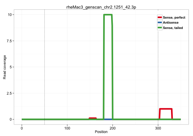 | TGAATGCTGAGATGATAGTCCTTTTGACCAGGATGTCTCAAGTATCCAAACCTAGAAATCATCTCTTCCAGGCTGTATCAAGATGGTTTGCATAGGAGACCATGCAGATGCACGTCTCTGCTGTCTTACGTTAAAAATGCAGAATGGCTCACCTGTTCTTTTGTTGTCATATGTTATATAGAAAGACATTCTGGGCCTATTTGCATGAGAACTGTCACCCAGAGTTTTGGGTAGGGTCAGTGTGTGCCACTGAACAGGAACGCTAAGGGCCATAACCTGTCTAATGTATTAAATTCTCAGGAATCGGGATTAAAAGTTAACCAGCCAGCATCCTTTGCTATAAGGTTGAA .............................................................................................................................................................................................................((((((.....((((((....))))))..((((...((((.((........)).))))....))))......................))))))................................................... ........................................................................................................................................................................................................201................................................................................................300................................................ | Size | Perfect hit | Total Norm | Perfect Norm | SRR553606(SRX182812) source: Kidney. (Kidney) | SRR553605(SRX182811) source: Frontal Cortex. (Frontal Cortex) | SRR553580(SRX182786) source: Kidney. (Kidney) | SRR553577(SRX182783) source: Frontal Cortex. (Frontal Cortex) |