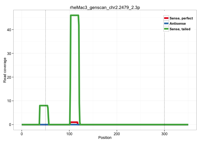 | TACAGGAGTACATGAGTGGAACTGGCTATAATTAAGAAGGGACTCTCATGAAAAAGAGTATAGAGTGTATCTGGAAGCGTAAGAATCAGGATAGTTCATGTGGAAGGGTTTAGTTAGATAATATTTGCAATCAAGATGAGTAAGTTTCTTCTCAGAAGTACACTTGTAATGATAATATAGTTGGAGCAGCATTGTAGTTTCTCCAAACTGTTCATGATTGATACTGCTTTAATTATAAACATAGTTTTTAGAAATTCTTTTTGTGACCCTAAAGAGGATTTCTTTTGTTTTCAACTTTAGAATGAAGATATACCAAATGTAGCAGTTTATCCTCATAATGGAATGATAGA ............................................................................................................................................................................................................((((((((.((((((((.......)))))))).))))..))))..((((((((((((((......))))))))))))))................................................................... ........................................................................................................................................................................................................201................................................................................................300................................................ | Size | Perfect hit | Total Norm | Perfect Norm | SRR553606(SRX182812) source: Kidney. (Kidney) | SRR553605(SRX182811) source: Frontal Cortex. (Frontal Cortex) | SRR553579(SRX182785) source: Heart. (Heart) | SRR553578(SRX182784) source: Cerebellum. (Cerebellum) | SRR553581(SRX182787) source: Testis. (testes) | SRR553577(SRX182783) source: Frontal Cortex. (Frontal Cortex) |