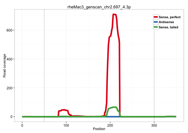 | TTGCAAATTGAGTGTCTTGGGGTCGGTTTTGATTTGCTCAGCTGTTGGCATTCTTTGGGCTCTGAGTGGTTGAGTTGACCTTTGACCTCCTGGGATCGCGTCTGGAGAGTGCCTAGTATTCTGCCAGCTTCGGAAAGGGAGGGAAAGCAAGCCTGGCAGAGGCACCCATTCCATTCCCAGCTTGCTCCGTAGCTGGCGATTGGAAGACACTCTGCGACAGTGTTCAATCCCTGGGTGGGAAAACCTCCTTCCAAGCCGCCTTCCAGGATTTTTCCTCACCTGGGGCTGCTTCTTTCCCAGAAGGCATCATGGCCGCCCTCAGACCCCTTGTGAAGCCCAAGATCGTCAAA ...............................................................................((((..((((((....((.((.(((((((((((...))))))).))))...))))..)))))).)))).....(((((((((.......(((((.((((((((........)))))).)).)))))....))))))..))).................................................................................................................................. ..............................................................................79...........................................................................................................................................220................................................................................................................................ | Size | Perfect hit | Total Norm | Perfect Norm | SRR553577(SRX182783) source: Frontal Cortex. (Frontal Cortex) | SRR553579(SRX182785) source: Heart. (Heart) | SRR553580(SRX182786) source: Kidney. (Kidney) | SRR553605(SRX182811) source: Frontal Cortex. (Frontal Cortex) | SRR553606(SRX182812) source: Kidney. (Kidney) | SRR553578(SRX182784) source: Cerebellum. (Cerebellum) | SRR553581(SRX182787) source: Testis. (testes) | SRR553607(SRX182813) source: Testis. (testes) |