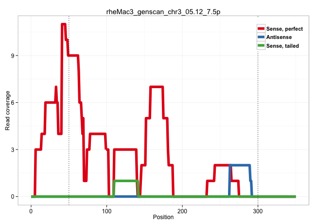 | ATTCTGAAGAAGAAGAAACTAGACAGTTGGACCTCCAGGACTAAGATGAAGTGAGCCGAGAGGAGACTGTGTCATAAGAATGCTTCTGTTATTAGCCGGGCGCGGTGCTGTGTACATGTAGTCCCAGCATTTCGGGAGGCTGAGGCAGGAGGATCGCTTGAGTCTGGAAAGTTGCAGTTGCCGTGAGCCGAGACCCTCGCCACTGCACTCCAGCCTGGGTGACAGAGCGAGACCCTGTCTCAAAAAATGAACAAAAACAAAATGCTTCTGTCAGTTAACAATCTTTATTAGAGGATTTTTAGTCTCTCTTTCTCAGCTGTGTGTTAAGTTGGTTTACAATAGCAAATAAA ..........................................................................................................................................................................................................(((.....)))..(((.((((((((((((((...)))))......((........))....))).)))))).)))..(((((((....)))))))..................................................... ........................................................................................................................................................................................................201................................................................................................300................................................ | Size | Perfect hit | Total Norm | Perfect Norm | SRR553581(SRX182787) source: Testis. (testes) | SRR553607(SRX182813) source: Testis. (testes) | SRR553606(SRX182812) source: Kidney. (Kidney) | SRR553578(SRX182784) source: Cerebellum. (Cerebellum) |