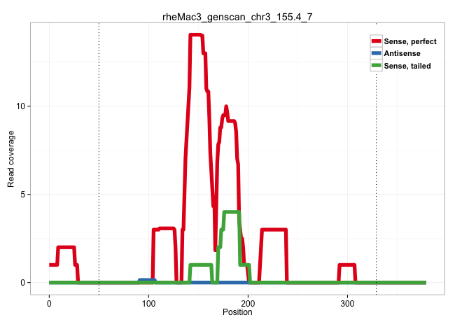 | GCCGTTCTCTCTGACGAAAAGTGTGCTCTTAGACCTGGCCTACGCCTATGGTGAGCCCTTTGGACAGAACAGTGGAGAGAGGGGAGCTCTGGCCCTGCAGATACCTGCAGCCATGTCAAATTCAGTGCCTGTCCTATGCATGGTAGGCACTGGCCCAGAAGGCTGCCACAGAAACACTGTGACTCATGGGCCCTGTTCCTGTGTCCCAGGCTCAGGGATAAATTTGGTTACAGACATCAAGCAGCGAGACCTTGAGGCTGAGGTGGGGTGAGGCTGGTGGGATTGCTGACCCTCCGCAGCTAAACCCTGTGATCTGCTCTGTCCCGAAGGCAAACTTGGCTTTCACCAGACCCAGGTGTCCCAGCGCCTGGCTGCCGAC ..................................................................................................................................(((((((.....))))).)).((((((..((.....(((((.....))))).))..))))))........................................................................................................................................................................................... .................................................................................................................................130...............................................................196..................................................................................................................................................................................... | Size | Perfect hit | Total Norm | Perfect Norm | SRR553579(SRX182785) source: Heart. (Heart) | SRR553605(SRX182811) source: Frontal Cortex. (Frontal Cortex) | SRR553581(SRX182787) source: Testis. (testes) | SRR553580(SRX182786) source: Kidney. (Kidney) | SRR553577(SRX182783) source: Frontal Cortex. (Frontal Cortex) | SRR553606(SRX182812) source: Kidney. (Kidney) | SRR553578(SRX182784) source: Cerebellum. (Cerebellum) | SRR553607(SRX182813) source: Testis. (testes) |