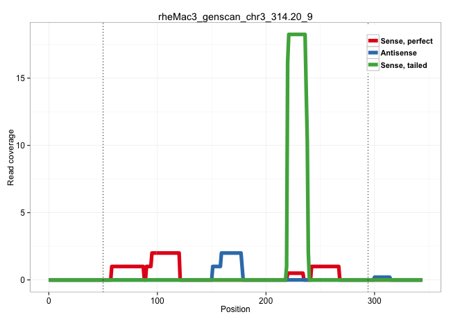 | AGTCACCTGGCGCCGTCGCTGCTTAGCCCAGAAAATCGCCTCTAATCTAGGTCAGCGCCCTAGACCTGTGTGTGGAGCGCTTCAGGGCTGAAGGAAGATTTTCTTCAGGGCTGAACCTAGATTTTCTCTAGCCCAGAAAATCTAGGTCAGCGCCCTAGACCTGTGTGTGGAGCACTTCAGGGCTGAAGGAACCACCGACGTTCTGCCGCTGACGGGATTGGAAGCGGGGCTGGGCCTGTCCCTCTGGGTCGTTCAGCCGCAGGGCTCTCCCTGCCTCCTCCCTCGGCCACCCAGGCCGGAGACACCCCGGCCCCTTCTCCGGGACTCTCCTTGTCAGTGAGATC ..........................................................................................................................................................................................................(((..(((((.((((..(((.((((((..((.(((((....((((.....))))..))))).))..)))))).))))))))))))....))).................................................. ..................................................................................................................................................................................................195................................................................................................294................................................ | Size | Perfect hit | Total Norm | Perfect Norm | SRR553581(SRX182787) source: Testis. (testes) | SRR553577(SRX182783) source: Frontal Cortex. (Frontal Cortex) | SRR553605(SRX182811) source: Frontal Cortex. (Frontal Cortex) | SRR553607(SRX182813) source: Testis. (testes) | SRR553579(SRX182785) source: Heart. (Heart) | SRR553606(SRX182812) source: Kidney. (Kidney) | SRR553580(SRX182786) source: Kidney. (Kidney) |