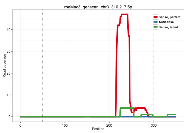 | TGGGTGGCCTAGGCCCCAAGCCCCGACCTCCAGGGCTGCCCGTCCTCCGTGTGAGAAGGGGCGGCTCAAGGGGGTCCCTCAGTCTCTCCTGGTCAAGGTGCCTGTGCTCCCGTGACTGCAGCTGCTCGTCACTGAGTTCTGAGAGTCCACAGGCTCAGCCTCCACCACGGACCCGAGTGTCCCTTCTCTGTGGCACCACAATTCAGAACTTTTGTTTCAGAAAGATGAGAGACTGTACGACCTAGCACTGGGTGGATACTTCAGGTTTGTGAACTGAGCGCACGATCTAGCACTGGGCGGATACTTCAGGTTTGTGAGCCGAGCGCACAGATTGTAAGTGACACCTCAGA .....................................................................................................................................................................................................................(((((..........))))).(((..(((((....)))))...)))...(((((((((.......)))).))))).............................................................. ....................................................................................................................................................................................................................213...........................................................................291......................................................... | Size | Perfect hit | Total Norm | Perfect Norm | SRR553581(SRX182787) source: Testis. (testes) | SRR553607(SRX182813) source: Testis. (testes) | SRR553605(SRX182811) source: Frontal Cortex. (Frontal Cortex) |