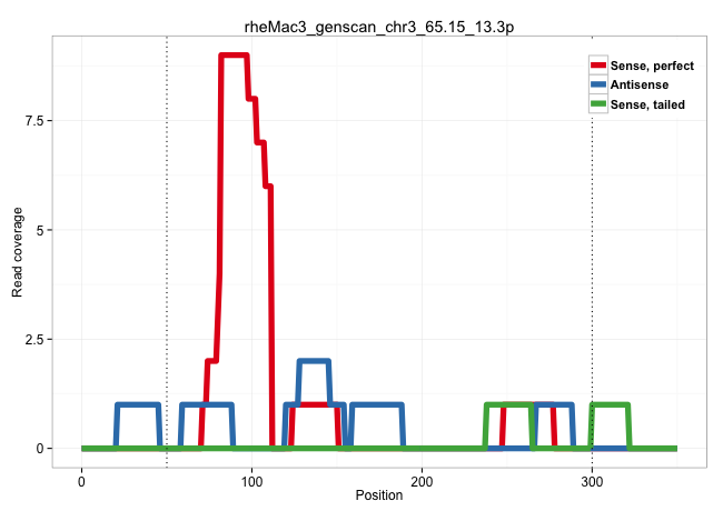 | CTGACGGGGTCCTGTCGCCCCTGTCCACACGCTGCCATGGTTTCCACAGCCACACGCTGGCTCCAGACATTTTCATGAGTTATGAACCAAAGAGAACCAGGACCCCTGGAGCAGATTCTCCTTCCCAATCCCAAGTTCCTTTGAAAGCGGTGAACACAGGCCAGGGAAGCGAGTGTTTATACTCCAGTTTAGTACTAGTGAAACATCGGGAATTCACTGTGTTGGTATCAAGCCTGAATCCAGAACATAAAGACCATAAAACTCTGCAAAGCCTCTGCTGTCTGACCGCGCTTTCCCCAGGCCTCCGCCGTCTGACCGTGCGCTCCCCTGGCCTCCGCTGTCTGACCGTG ...............................................................................................................................................................................................................(((((......(((.((((.......(((....))).......((((...........(((.......))).)))).))))))).)))))..................................................... ........................................................................................................................................................................................................201................................................................................................300................................................ | Size | Perfect hit | Total Norm | Perfect Norm | SRR553581(SRX182787) source: Testis. (testes) | SRR553607(SRX182813) source: Testis. (testes) |