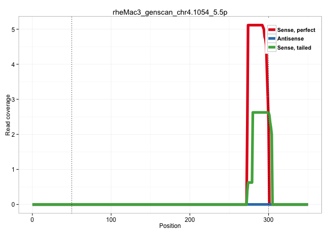 | TTGAGGCTGACAGCTTTTGGTGCATGAGCAAGCTGTTGGATGGAATCCAGGTGAGCTGCTTCTGCCCTTGTGGGAGAATCTAGGTCCAGGGGCTCCCAGCAGGCCTTTGGTTTCATTCTTGCTCTTCTGTATCAGGCAGGACCACCCACTATGGCTCCTCCTCCTTTTGGTCTCTCTCTGTCCTTCTTCATTAGCTTTACAGCTTTCAAACAGCAATGGTGGGTTGGGCACGGTGGCTCACGCCTATAATCCCACCACTTTGGGAGGCCAAGACTGGAGGATCGCTTGAGCTCAGGAGTTCAAGACCAGCCTAGCAACATAGAGAGACCCCATCTCTACAAAAAATTTTA ........................................................................................................................................................................................................(((..((...(((...(((((((.(((((...(((...))))))))....)))))))..((((....))))..)))...))..)))..((((....)))).................................................. ........................................................................................................................................................................................................201................................................................................................300................................................ | Size | Perfect hit | Total Norm | Perfect Norm | SRR553606(SRX182812) source: Kidney. (Kidney) | SRR553605(SRX182811) source: Frontal Cortex. (Frontal Cortex) |