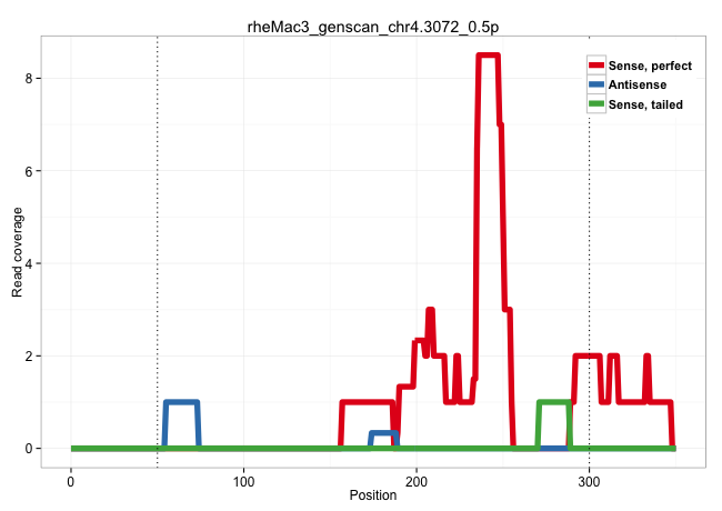 | AGCCCAGCCAGGAACAACACCGCCTGGGCACTAAACCTATAGATGACCAGGTGTTTCCGGATTCCTGCGCCCCGCTTCCAAGCAAGCTCCGCCCCTCACGGCAGGAGCGGGGCTGGAGGACGTATCATAGAGAGGTCGGATAGAGGCTCCCGGGACCTGCGTGCTGCCAAGAGAGGAAGCGAAGGGCGCCATCTTTGGTAAGGACAGGAGGAAAACGTGGGCGGAGAAAAAGTCGACGGATTAGTAGAGTCTATTTATCTCCTCCCTCTCTTTGGAAAAAAGAGGAAGGTTTGGGATTGGGTAACTTCTTTTGAAAAGGATTCTCCGAGTTGCAGGATAGATCGTTGTGT ..........................................................................................................................................................................................................(((......((..(((.(((.........))).)))..))......)))................................................................................................... ..........................................................................................................................................................................................................203.....................................................259......................................................................................... | Size | Perfect hit | Total Norm | Perfect Norm | SRR553578(SRX182784) source: Cerebellum. (Cerebellum) | SRR553577(SRX182783) source: Frontal Cortex. (Frontal Cortex) | SRR553605(SRX182811) source: Frontal Cortex. (Frontal Cortex) | SRR553606(SRX182812) source: Kidney. (Kidney) | SRR553581(SRX182787) source: Testis. (testes) | SRR553580(SRX182786) source: Kidney. (Kidney) | SRR553607(SRX182813) source: Testis. (testes) | SRR553579(SRX182785) source: Heart. (Heart) |