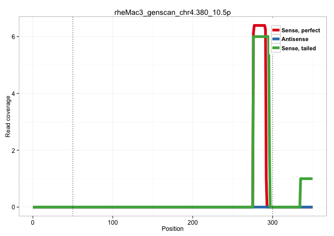 | TTCACTCCACCAGGGCCCTCTGAGTCACACTTAGATGGGGCAGTAAGAGGGTAACTCAAGGGAAACGGTATCTGCCTAAATTAATGTCGACCTTGTTGGAGTAACTCGCACTCTTCGGTATCCGCAGCTGTGGAGTCCCAAGGGAGTTGTCTGGCTACATGTGATTTTACATATCTGACAGCTAAATCAGAGATCCAAATGCCAAATCCTGCACTCAGGAACGTTATGTGGATTTGTGACACTCCCAAGGGGACTTTGGATCCATAAAGCAATGAATGGATTACAATGAGGCATAAATATAGCATTTTCATCTGTGACATAAAATCTTGCTCTATTATTTCTCACATTGT ........................................................................................................................................................................................................(((...(((((....)))))..(((.((((((..........(((.(((....))).))))))))).)))...................))).......................................................... ........................................................................................................................................................................................................201................................................................................................300................................................ | Size | Perfect hit | Total Norm | Perfect Norm | SRR553606(SRX182812) source: Kidney. (Kidney) | SRR553605(SRX182811) source: Frontal Cortex. (Frontal Cortex) |