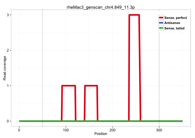 | GACTTGGTGGTGCACGCTTGTGGTCACAGCTACTCTGGAGGCTGAAGTAGAAGTATCACTTGGACCTGGGAGATTGAGGCTACAGTGAGCCCTGACTGTGCCATTGCATGACAACCTGGGCAACAGGGCAAGGCCCTGTCTCAGAAAAACTTAAACCATAGCCTGCCCAAGAACTTCTCTGAGGAGAGCTTGGGAAGGAGTGTTCATGGTCTCAGGCTCTATCTCCCTGAATTTTCTCTGGGGTTGTCTGAGCAAGGATCTTTCTCTCCCTGACCCTGCCCTCTGCTACCCACCCTCTAGGGCACTGTTCATGGAGCCCACACTGCTGATGCTGGATGAGCCCACCAACC ...............................................................................................................................................................................................................((..(((((.........)))))..........((((.((..(((..(((.((...........)).)))...))).)).))))..))....................................................... ........................................................................................................................................................................................................201................................................................................................300................................................ | Size | Perfect hit | Total Norm | Perfect Norm | SRR553606(SRX182812) source: Kidney. (Kidney) | SRR553605(SRX182811) source: Frontal Cortex. (Frontal Cortex) | SRR553579(SRX182785) source: Heart. (Heart) | SRR553581(SRX182787) source: Testis. (testes) | SRR553577(SRX182783) source: Frontal Cortex. (Frontal Cortex) | SRR553607(SRX182813) source: Testis. (testes) |