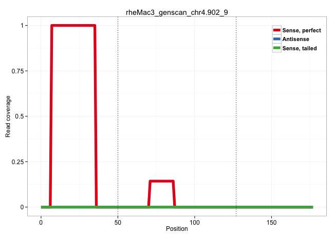 | GGGGAGCTCTTTTTGTTGCTGGACTCTCGAGGAGCCTTCCATACAAAAGGGTGAGCCCCGAGATGGGGGAAAGAGTTAGGGCTGGGCCCCTAGCTGGACATGACGGCTACCCCTCCCTGTGCCCCAGGTACTATGCAGCTGTGGAGGCCAAGAAGGAGAGAATGAGCAAACATGCCC .......................................................((((......)))).........((((.(((....((((((.......)))))).....)))...))))..................................................... ..................................................51..........................................................................127................................................ | Size | Perfect hit | Total Norm | Perfect Norm | SRR553607(SRX182813) source: Testis. (testes) | SRR553579(SRX182785) source: Heart. (Heart) |