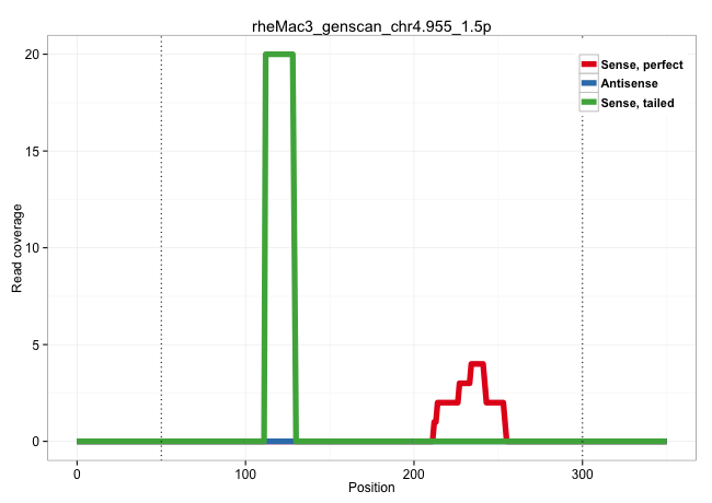 | CGGTGGCCTCCTGGGAGATGCCTTCCTGCACCTCATTCCTCATGCTCTTGGTAAGTAACCTCTGACTTCTACCTCAAATCTAACCTATTTTGTTCTTTGGGGGAAAAGGGTTCTTTCTCCTTTATGATCCCTGACCTTTCGATATTCCCCCAAATACACACCCTTTGTGTCAGATATTCCCTCATCTGGTTTTCCCCCCATCTTCCAGAACCTCATTCTCACCACACTCTGGAGCAACACGGACATGGACACTCCCACAGTGGTGAGGAAGAGACAGATGGGGATGGGAGCTGGGGTGCTGGGGAAGGTCTGTCTCTCCCTATTCCTCACCTCCTGCACTTGAGGAGGAG ...........................................................................................................(((.......(((...(((.(((.((.......(((............(((((.....)))))(((((........)))))...........))).((((((..................))))))....)).)))))))))....))).............................................................................................. ...........................................................................................................108....................................................................................................................................................259......................................................................................... | Size | Perfect hit | Total Norm | Perfect Norm | SRR553606(SRX182812) source: Kidney. (Kidney) | SRR553605(SRX182811) source: Frontal Cortex. (Frontal Cortex) | SRR553581(SRX182787) source: Testis. (testes) | SRR553607(SRX182813) source: Testis. (testes) |