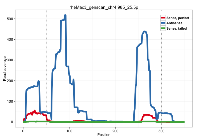 | ATCCAAGACAGACTGAGGATCGTCATGGACATTGCAGTAGGGACCAGGAAGTAAACTCGAAGGACCCAGTGACCTTCCTGGAGCCTTCGTCCATTCCCCTTATTGACCCTCCTTTTGTATTGTCTGGATGAATTGCCAGTGAAGCCCTCACTTGAGAGGGTCTGTGTGTTTGTACCACCGCAGGGAAGGCTAAGGGCAAGGCAGGGGTGGGCAGGATCCAGCGAGCCTGCCTTCCTCCCCGCTTGATGCCATCCCTAAACTGTCTGAAAAGTGTCACCTGGCTAAGCAAGAAAGCCACTAGAGACGTGGGGTAAAGATGAAACAGGCAGCTCCCTGGAGGCTGGGTTTTT ..........................................................................................................................................................(((.(((..(((.((....)))))...(((((.(((...((((..((..((((.(((((((.((....)).))))))).)))).))))))...))).)))))..))).))).......(((....))).................................................................... ........................................................................................................................................................153.................................................................................................................................285............................................................... | Size | Perfect hit | Total Norm | Perfect Norm | SRR553581(SRX182787) source: Testis. (testes) | SRR553607(SRX182813) source: Testis. (testes) | SRR553605(SRX182811) source: Frontal Cortex. (Frontal Cortex) | SRR553579(SRX182785) source: Heart. (Heart) |