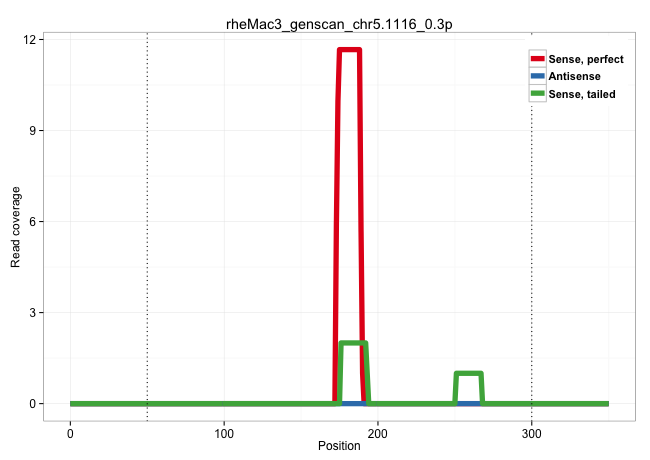 | CTACAGTACTAAGAACAGTGCCTTATATAAAAGAAGTTTAATGATTATTTGATGAATGAATGAATGAACCATTTTCTATTTTTTTTGTTCTGTGTTGTAACAAAGGGTTTGCTTACCAAATTACTGTTGAACTCAGGTGCTGGAACCAAGTTATAGAGATTGGCTTTCATCACTAAGATACGTTTGTGGAAGAGGAGTTGTCTTAATTTAATAAACCACACCAATATCTGACCAGTAACTTGAATCAAGACAAGTGACTGCTGTGGCCTGCACTTTCCATTAGCACACCTTCCTACTTAGGGTCAATGTCATTAACCAACAGTTGGTTAGATGACATCAGGGCTTTAGGT .........................................................................................................................................................................((((..(((((....(((((.....((((((...))))))......)))))....)))))...((((.(((((........))))).))))..)))).................................................................................... .........................................................................................................................................................................170...................................................................................................272............................................................................ | Size | Perfect hit | Total Norm | Perfect Norm | SRR553577(SRX182783) source: Frontal Cortex. (Frontal Cortex) | SRR553605(SRX182811) source: Frontal Cortex. (Frontal Cortex) | SRR553578(SRX182784) source: Cerebellum. (Cerebellum) | SRR553579(SRX182785) source: Heart. (Heart) | SRR553581(SRX182787) source: Testis. (testes) | SRR553580(SRX182786) source: Kidney. (Kidney) |