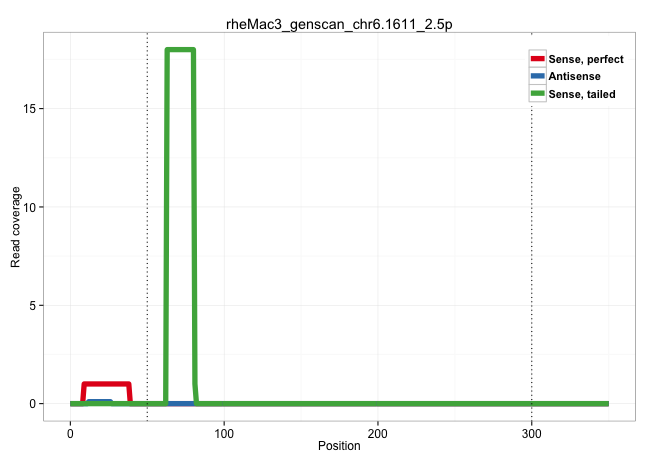 | TAAAACAAGCAAGAGCTCCAGCAAGCATAGAGGAGCAGTGCATGCTTTGGGTTAGTGACATTTAAAATTTTTGTTTGGTTTGACTTAAGTCTTTTAATATGTTTAATTTTCTAAGATTTTTTTCTATTTGGTTAAATCTCACTGCAAACTTGAAAATTAGTAAATGAATGTAATGAAATTTTGCAGTAGACATTTCTCTTATGCATTTTTTTCTATAATTATAGAAGTATTTTCTTTCTTGTTAAATTGTTAAAGATATTGGAAATATAAGCCAAAAATATTTCAAATAAGAGTTTAATTTCTCTTGATTGCATATGACAAACAGTATTTGTGAAACTGTGTGTGTATAC .................................................................................................................................................................................................................(((((((....)))))))........((((((((..(((......)))....(((((((.........))))))).))))))))......................................................... ........................................................................................................................................................................................................201................................................................................................300................................................ | Size | Perfect hit | Total Norm | Perfect Norm | SRR553577(SRX182783) source: Frontal Cortex. (Frontal Cortex) | SRR553578(SRX182784) source: Cerebellum. (Cerebellum) | SRR553579(SRX182785) source: Heart. (Heart) | SRR553605(SRX182811) source: Frontal Cortex. (Frontal Cortex) |