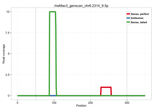 | GGAGATACAGCAAACACCCAATACTGTTGCAGCCTCCCCTGCTGCGTCAGGTAAGTTACCACTTTTCCTTTACAACCTCAGAGGTGTTGAACTTGACATTGACTCAGTTTCACTGTTTGTTACTAAGCAGTTGTCAGTCCTAGATTTAAAGCCCAACTTTTTCTAACTTTTTTTTGGAGCTACTTTACCTGGTAAACAATGTAGTCTCCATATTATAAAGCCATCTGTCTTCAAGATACTGATAGCCCTGATTGACCACTGCATGGATATTGAGAGTAATATTGAGCTGCTTTCTTAGAGCTTGCAAAATCAAGGTGCTAGAGATACCTAAGATTATAGAATAGTGGAAT ........................................................................................................................................................................................................((((.(((.(((((((...((.(((((((.....))))..))).)).........(((.....))).........))))))).)))))))............................................................ ........................................................................................................................................................................................................201................................................................................................300................................................ | Size | Perfect hit | Total Norm | Perfect Norm | SRR553606(SRX182812) source: Kidney. (Kidney) | SRR553605(SRX182811) source: Frontal Cortex. (Frontal Cortex) | SRR553581(SRX182787) source: Testis. (testes) |
