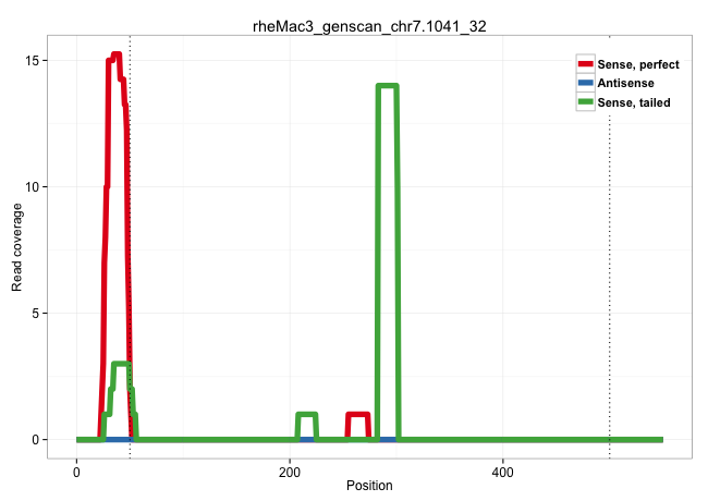 | TCTTATAAGTGTTTAGCAGCAGCTTTGATAGTTCTGACGGAGTCTGGCAGGTAGGGCCCTAAGGGCAGGTAACACTGCTAGGATAACCAGCCTCTTGCTTCAGCTGTTCCAGGAGAAGACAGCCAGGCCCAACCTGGCACCTGGGCACAGAGCCTCTTCTTGTCTATAGGAACACCGCCAGGGAGGTCATGGCAGGGCAGGACCAAAGGGTCCTGTGGCTCAGTAGGCACAGCAGATGTCACAGGCACTTGGTGAAGGACTGGTTTCTGTGGAGTCTTGAAATTGGCTCAGCTCAGCATCTCCAGTGACTGGGCTACTCTTGGCCTTTGTCCCTAGGAACATGTTCCTCACCAGCTGTCCGGGTGACTCTTCCCCTCCCTCTCCTTCTGTGACAAAGCTCTGACAAAGCTCTGTCCCCCTCTCGTCCCTCTGGACGGATGTTGCTCCCCTAGATAGCCCGTGAGGCAGAGGCCGCCATCTACCACTTGCAATTATTTGAGGAACTCTCCCCGCCTGACAACCATTACCAGCGACCCCACGAAAGCCACCA ..................................................................................................................................................................................................................................................................(((((...(((..(((((........)))))....))).....))))).................................................................................................................................................................................................................................................... ..........................................................................................................................................................................................................................................................251....................................................306.................................................................................................................................................................................................................................................. | Size | Perfect hit | Total Norm | Perfect Norm | SRR553606(SRX182812) source: Kidney. (Kidney) | SRR553578(SRX182784) source: Cerebellum. (Cerebellum) | SRR553605(SRX182811) source: Frontal Cortex. (Frontal Cortex) | SRR553577(SRX182783) source: Frontal Cortex. (Frontal Cortex) | SRR553579(SRX182785) source: Heart. (Heart) | SRR553581(SRX182787) source: Testis. (testes) | SRR553580(SRX182786) source: Kidney. (Kidney) |