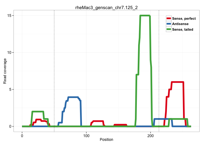 | ACGTCATCTGCTCCCCTGAAGGATCTGGAGGTAAGAGGCTCTGGGCGGAGGTACAGTGACCCTGCAGGCCAGCCCTCCAACCTCCTCCCACAGCAGGGACTCGGTGCCCCTCTGCCAGCTGAGACAGCCCACACACACCCCAGCCCTAATGATTGTTCTCTCTACCTCTCCCCCGACTCCTCCTCCACCTCCTCCTCTCTGCATGTGCCTCAGAGCCCGTCCCAAGAACTAGCAGTAGTCCTGGACTCGAGGTCTGTCAAAAT .......................................................................................................((((..........((((...................))))......((....))..........................................))))........................................................... .......................................................................................................104...................................................................................................206....................................................... | Size | Perfect hit | Total Norm | Perfect Norm | SRR553581(SRX182787) source: Testis. (testes) | SRR553605(SRX182811) source: Frontal Cortex. (Frontal Cortex) | SRR553607(SRX182813) source: Testis. (testes) | SRR553606(SRX182812) source: Kidney. (Kidney) |