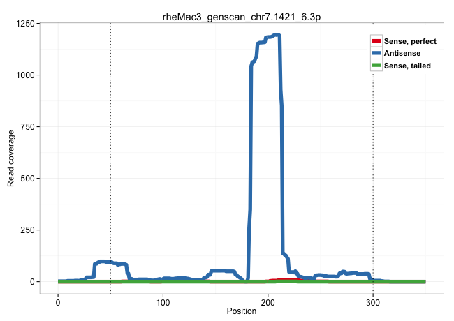 | CCCCACACTCCAGTCATTCATGGAGTGGGTGCCAAGCTCATCTCTATTTGAAACTCAGGGTCTGTCTGGGAGCCCAGAATTCCTGAGCAATTGTTTTATTGGGTATAAAGTGTTTCTTCAGCAGGGAGGATGATGTGGTGCAAGATGCACATGTATCCTAGAACTTAAATAAAAAAAAAAAAAAGACAGTTCTACTGTGCAAATTGACTTCAGACCTGGAGAGCATACAGGGAAACAAGCCACATGCCTCGTAGCAGGTTCCCTGGGAAATTCCTTGCTCTCCTAATGTCTTTCCCATAGGCAGCCCTCACCCCGGTGGGCTATGAGATTTTGCCCCCTCAACCTGAGAA ............................................................................................................................((((.........((((.....)))).(((((..(((((((......................)))))))..)))))......))))...((((.........))))....................................................................................................................... .........................................................................................................................122...........................................................................................................232.................................................................................................................... | Size | Perfect hit | Total Norm | Perfect Norm | SRR553581(SRX182787) source: Testis. (testes) | SRR553607(SRX182813) source: Testis. (testes) | SRR553578(SRX182784) source: Cerebellum. (Cerebellum) |