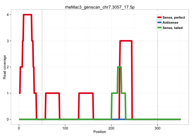 | CAAAGGCATTGTAGACATTCTTCCTGCAAGACTTGGGAACCGACAAATAGGTGTGCCCTGCTTGCTAGAGTTTTTGTGCAGGAACAGCCCCTCCCGTCTTTGTCCTGGCCGTGAGCACCAGGGCTAAGCTTTTGAACACTTCCTTTATGTTTGGATTCAGCCCAGGCAATGCATATTTGCTTTCATTTCTTCTTGAGCTTGAGAAGCTCCTGGGTGCAAATCTTGGAAAATGAGGATCTCTGAGCCCTTCTAGGCCAGCCCTTTGTTTTCTAGCAGACAATTGAGGCTTTGAAAGGGAAAGTGGGTGCGGGCACCCCACAGGTGGCCCTCATCACCCAATTGCCAGTGCC ..........................................................................................................................................................................................................(((((((.((..(((......(((((((..(((....(((.(((......))))))..)))..))))))))))..))...))).))))............................................................ ........................................................................................................................................................................................................201................................................................................................300................................................ | Size | Perfect hit | Total Norm | Perfect Norm | SRR553581(SRX182787) source: Testis. (testes) | SRR553607(SRX182813) source: Testis. (testes) | SRR553579(SRX182785) source: Heart. (Heart) |