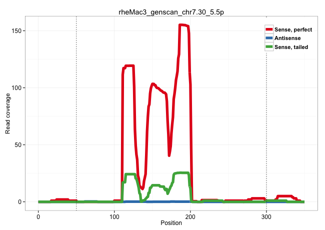 | GGACACATGTGGTGCGGGCTCCTTTGGAGGCTGTTGAATCCCTTCTGAATGTAAGTGTCCACTTTCTAAAGTCCTGATTTTCCTCATTTTCGGGCATGAATAATGTGCATGGATCGATGATGACTTCCATATATACATTCCTTGGAAAGCTGAACAAAATGAGTGAAAACTCTATACCGTCATCCTCGTCGAACTGAGGTCCAGCACACTGCTCATCAGGGGCTAGAGAGAGGGACAACATCCATTTGTTGACACGGGCTGCATCAATGCTTGGGATGGGGTTGTCTTTGGGCGAAGTGGAGTAGCTGGGCATTTTGGACTTCTGTGGCTGAGAGACAGCTTGGTTGAAG ..........................................................................................................((.((((((((.((((((.((((.............))))..............((((....))))......)))))).)))..........)))))))................................................................................................................................................. ..........................................................................................................107................................................................................................206.............................................................................................................................................. | Size | Perfect hit | Total Norm | Perfect Norm | SRR553578(SRX182784) source: Cerebellum. (Cerebellum) | SRR553577(SRX182783) source: Frontal Cortex. (Frontal Cortex) | SRR553605(SRX182811) source: Frontal Cortex. (Frontal Cortex) | SRR553580(SRX182786) source: Kidney. (Kidney) | SRR553579(SRX182785) source: Heart. (Heart) | SRR553581(SRX182787) source: Testis. (testes) | SRR553606(SRX182812) source: Kidney. (Kidney) | SRR553607(SRX182813) source: Testis. (testes) |