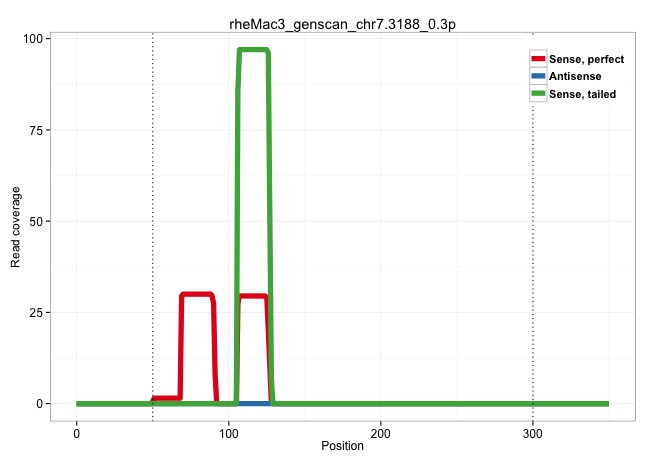 | GACTGAATGTCAGGTTTGGGGAAGGAATCAGTGATGTTCTTGTCAGTGTGAATCAGTGGTACCTGAAGGGAGGTTTTCTGGGTCTCTGTTTCTTTACTGAGGATGAAACACACCTGGTTAACCTCTTTTCCAGTATCAAATCCCATCTTGGAGGCCTTCTGGTCCAGACCTCAGCTTCAGGGAAGGGGTGCTCTGGGCATAAATAAGTAGACATGAGCAAATGGTGACTGCTAAGCGTGCTCCATGTTTCTGAATTTTGCCACCAATTGCACTAACCCTCAATGTCTTATCCCTTCTTAGGAGGACTTTTCAATGTGGTGGCAGCCTGGGGGAAGACAGTATCACCACGA ................................................................(((((((((((..((((((...((((((.((......)).)))))).))))))..)))))))))))............................................................................................................................................................................................................................ ..................................................51..............................................................................131......................................................................................................................................................................................................................... | Size | Perfect hit | Total Norm | Perfect Norm | SRR553577(SRX182783) source: Frontal Cortex. (Frontal Cortex) | SRR553578(SRX182784) source: Cerebellum. (Cerebellum) | SRR553605(SRX182811) source: Frontal Cortex. (Frontal Cortex) | SRR553579(SRX182785) source: Heart. (Heart) | SRR553580(SRX182786) source: Kidney. (Kidney) | SRR553606(SRX182812) source: Kidney. (Kidney) |