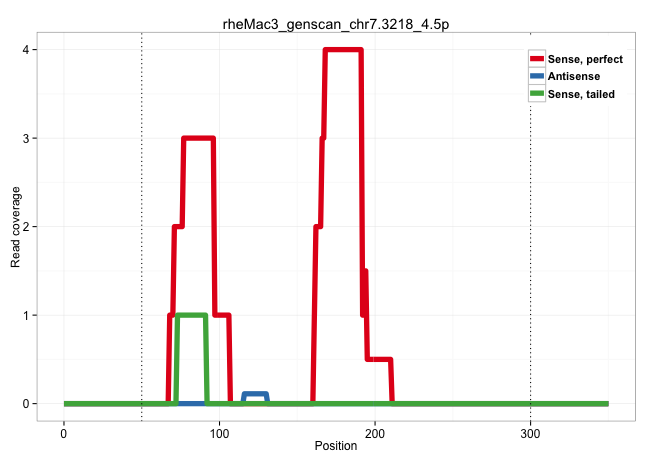 | CTGCTTGTCAGGAGGGATTTATTTGCACATGGGGAAGGCCTGGTAAAGTGGTAAGTTTTAATCCTTAATGCTGCACCAGATCTAGAACTTGAATAGGTAGTGACTTTTTTTTTTTCCCGTGGGAGGGGTGGGGTGTACAATGAATGTGAATGACACTTCTTATTCTTAATGTAAATCTAAATGCATCAGAGCCATAATTTTGGATACTGCATGCCATGTAATTCTGAATCATTTGATAATTTACCTTAGAGCATTTAAAAAAATATAATCAAACTAATTGCCAGCCAAGTCAGTCATCCTCCTGGGAGTATATAGAGTCCCAAGGTTAGCGCTCCTGTATTAGACTATTT .....................................................................((((((....((((((((...(((((((.(((((((((...(((((((....))))))).))))).((((.....)))).....)))).)))))))...(((((........)))))...........))))))))..)))).))........................................................................................................................................ ....................................................................69................................................................................................................................................215..................................................................................................................................... | Size | Perfect hit | Total Norm | Perfect Norm | SRR553581(SRX182787) source: Testis. (testes) | SRR553579(SRX182785) source: Heart. (Heart) | SRR553578(SRX182784) source: Cerebellum. (Cerebellum) | SRR553577(SRX182783) source: Frontal Cortex. (Frontal Cortex) |