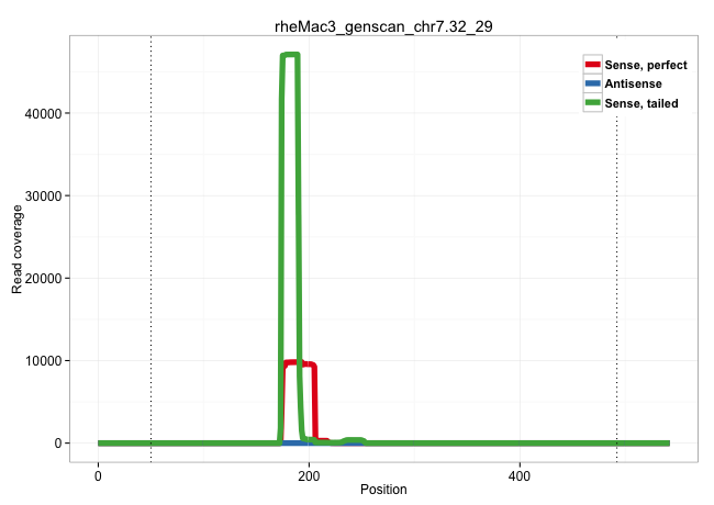 | GGAAGACTTGCATTGGGCCCAATGGACCCAGGCCAGTGTCTGTCAGCCAGGTGCCCAGCTCCTGATGTGCTGAAGCTCAGGCCCTTCCTGGAGCCCTGGTCTCATGCCCTGAGCTGTGGTGAGCCCGTCTGGGTCCCACTGGATGCATGCATGGGAGGGGGGTGCCCTCGGTTGGGTCGATGATGAGAACCTTATATTGTCTGAAGAGAGGTGATGACTTAAAAATCATGCTCAATAGGATTACGCTGAGGCCCAACCTAGGTGAGAATTTTGGAAGAGGATGCTGGGATCCTGAGGTCCCTGGCAGGGCCACTGTATTTTGGGTTGGAGACCTCAAGGTCCTGAAGGGCATCTTGGCGGCCCCCAGCCCTGTCTGCACTCCTCTGTGAGGCAGCCCAGGCTCACGGAGTTTGGTGTCAGAGTCCCATTCCCCAGGGGCGGGGCAGGTTGGCGGCTCCTCCCTGAGTCCCCCTTCTCCCTTGTGTCTTTCAGTGACATCTTCTGCCCAGGTGGCCCCCTGGCAGTGACCAGCATAGGCGAGT ...........................................................................................................................................................................(((((((....(((((...)))))((..(((......)))..)))))))))................................................................................................................................................................................................................................................................................................................................ .........................................................................................................................................................................170.................................................222.............................................................................................................................................................................................................................................................................................................................. | Size | Perfect hit | Total Norm | Perfect Norm | SRR553578(SRX182784) source: Cerebellum. (Cerebellum) | SRR553577(SRX182783) source: Frontal Cortex. (Frontal Cortex) | SRR553605(SRX182811) source: Frontal Cortex. (Frontal Cortex) | SRR553580(SRX182786) source: Kidney. (Kidney) | SRR553579(SRX182785) source: Heart. (Heart) | SRR553606(SRX182812) source: Kidney. (Kidney) | SRR553581(SRX182787) source: Testis. (testes) | SRR553607(SRX182813) source: Testis. (testes) |
