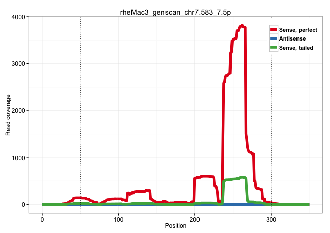 | AGCCGGAAACGGAGGGCAGCTTTGCTCTCCAGAGCAGGGAATGTGTCTGGGTAGAAGCAAGGAAAGTTCCTGCCCGCCTCAGATTTTCTTCTGGATACAGACTGCCCTGTTCTTTGACTTCTTCTCCAGTGTGGAATAAGGCTGAGGGTCTCATTTTGGTGAAAAAAGTAACCATGACAACAGCCACATCGTGGAGAGCATAGTAAAATGTGTAAAGCTCGCTGGCAATGCCTTCCCTTCCAGATTGAAAGCTCCTAGTCAGACAGCGACTCAACTGCGCCAAAAGAGCGGAAGGGAAGACCAGACCAGGGAAAGCTTCCCGTGCCCTGCCCTGGGGCCTTCCACAGATT ..............................................................................................................................((((.(((((...(((((...(((......((((..........)))).)))..))))).......(((..((((.((.....(((.......)))..)).))))..))).))))).))))....................................................................................................... ....................................................................................................................117...................................................................................................................................................267................................................................................. | Size | Perfect hit | Total Norm | Perfect Norm | SRR553581(SRX182787) source: Testis. (testes) | SRR553607(SRX182813) source: Testis. (testes) | SRR553606(SRX182812) source: Kidney. (Kidney) | SRR553605(SRX182811) source: Frontal Cortex. (Frontal Cortex) | SRR553577(SRX182783) source: Frontal Cortex. (Frontal Cortex) | SRR553578(SRX182784) source: Cerebellum. (Cerebellum) |
