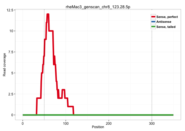 | AAAGACCCATGAAGAAAGAAAGAAAGAGAAAGCTATGGTTCCAAAAGCAGGTAACTGTAGATTTTGGAAGAAGGTGGAGATGGTGATTAAACTGTAGTCCTTGTTTTTTAAAAATGTTCTTTCATGTTAGGCACCATCCACATAGTTATTAACTACCAACTTCCAAAGAGAAGATCCACTTGATTTATTTATATCATGAAAATACTAAAAATTAATTCTCAAGTCTAACTATTACATTATCTTGCTAGGGCCATTTCCCTAAATTTTTAATTCAGAAAATTAACCAGAGTTGGCCAGATGCAGTGGTTCACGCCTGTAATCCCAGCACTTTGGGAGGCCAAGGCGGATGG ...........................................................................................................................................................................................................................((((.................))))....(((((.(((....(((((((......))))))).....))).)))))....................................................... ........................................................................................................................................................................................................201................................................................................................300................................................ | Size | Perfect hit | Total Norm | Perfect Norm | SRR553581(SRX182787) source: Testis. (testes) | SRR553607(SRX182813) source: Testis. (testes) |
