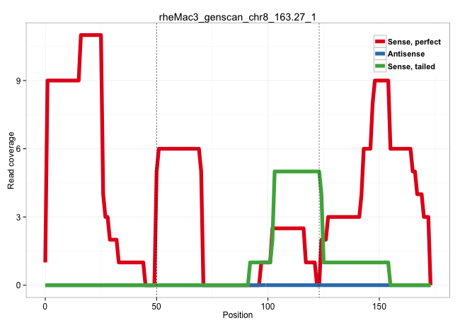 | CTGCCACCGACTGGGATGACAAGAGCATCCGACAGGCCTTCATCCGCAAGGTGGGTGGGGGCATCTCGGAGGAGGTGGGGGGTGTGGCGCCCAGCGGATGACTCCGAGCGGCTCCTTTCCCAGGTGTTCCTGGTGCTGACCCTGCAGCTGTCGGTGACCCTGTCCACGGTGTC ...................................................((((.((((((..(((((((....((..(((((...)))))..)).....)))))))..))))))..))))................................................... ..................................................51............................................................................129.......................................... | Size | Perfect hit | Total Norm | Perfect Norm | SRR553581(SRX182787) source: Testis. (testes) | SRR553607(SRX182813) source: Testis. (testes) | SRR553577(SRX182783) source: Frontal Cortex. (Frontal Cortex) | SRR553605(SRX182811) source: Frontal Cortex. (Frontal Cortex) | SRR553579(SRX182785) source: Heart. (Heart) | SRR553580(SRX182786) source: Kidney. (Kidney) | SRR553606(SRX182812) source: Kidney. (Kidney) | SRR553578(SRX182784) source: Cerebellum. (Cerebellum) |