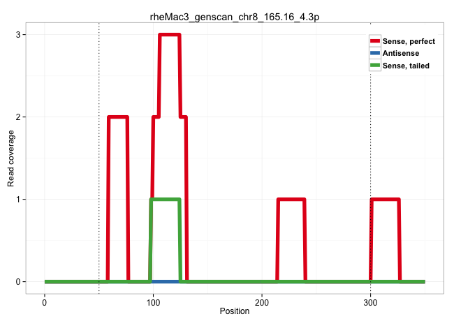 | CTCTCCCAAGTTCCAGGGGTAGAGGTGGACTGTCCTTTGCAGACTGGTGACAGGGTCACCTGGAGATTGTGGGAGTCAGGTATCCCTTGCTGTCTAGCCACAGGAGCTGGACAGATCTGGACAGAAAGGGCTTCTGTGTCCCCAGATTCTCACCACCCTTGACACTTCTCTCTCCCTGCAGGGGCTCTGCCTGTGCCTTGTAGCCCCCCTGCCCCTTTACATTTGGAAACCGGGGAAGGCTTAACCCTGTGCTGCACGCTCCCTGTCATGCTGACACTGTCTTCTCTGCCACACACACAGCAGGATTCCTAGTTTTCAAGCCTGAGCTGATCTCCCGGCTGGAGCAGGGA ...................................................((((..((((((...((....)).))))))..))))..(((((((((.......))))))))).(((....)))................................................................................................................................................................................................................................. ..................................................51.........................................................................126.............................................................................................................................................................................................................................. | Size | Perfect hit | Total Norm | Perfect Norm | SRR553581(SRX182787) source: Testis. (testes) | SRR553578(SRX182784) source: Cerebellum. (Cerebellum) | SRR553577(SRX182783) source: Frontal Cortex. (Frontal Cortex) |