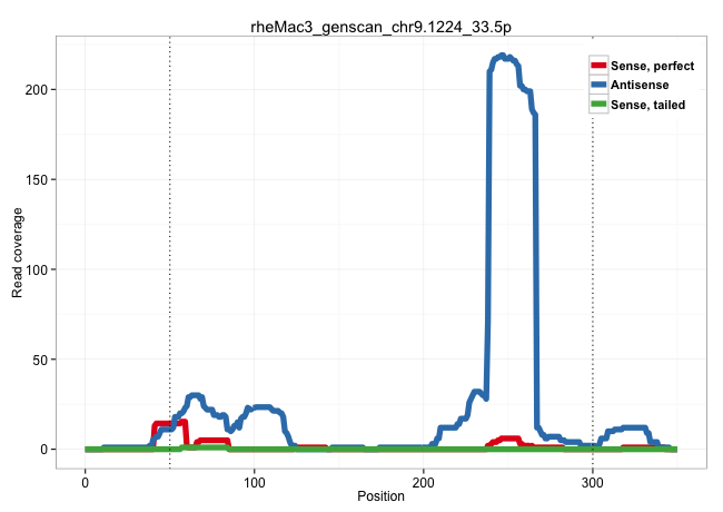 | TGTGGCAGCAGAACCAGTGCCTTTGGCATTTTCCTCCCACACTGGGGAAGGTGACTTTGGTGTTCTTACAAACTCGTCTCTCGGCCTTTCTCTCCTGCCTTCCACAGCCTCTCGTTTCTCCTCCATCTGTGCTTATTACTTGAGCACTGTGTCTGCTCTGTGAGAGCTGCGTGGGCAGGGCCGCGGTGGGGTCCAGGTGGTGTCAGCTGTGCTGATGCCTGCCATTGGGTCCTCCTTAGGCTCTGTAAGTCGTGACAGCCTTCATCAGTGCAATGTTTGCAGGGTAATTCTTAAACCTTTTAGAGGGTGGCAGGTACATCAGTTCCTTTTAATATGAAAACATTCATGTT ...........................................................................(((...((((........(((((((....(((.((((((.........(((..(((((((.....))))))).))).........)))))))))...)))))))(((..((.(((..(((((((((((((((...))))))))).)))..)))..)))))...))).......)))).))).............................................................................................. .............................................................62.....................................................................................................................................................................................................261....................................................................................... | Size | Perfect hit | Total Norm | Perfect Norm | SRR553581(SRX182787) source: Testis. (testes) | SRR553607(SRX182813) source: Testis. (testes) | SRR553579(SRX182785) source: Heart. (Heart) |
