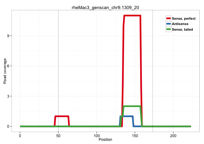 | ACATCCCTACCACACAGAGCCAGGGCTTCCACTGCCCACCAGTGTGGCCTGTGAGTTGTGGGGCCAGGGAACAGGTGAATGGAGGGGAGGCACACTGGGCAGGGGAGGTGGGGAGGGAATCTTCTCTGCCTCTCTTTGGGCTGAGTTCCTGACATGGCTCTCATCCCACTTAGTGAGCAGTGTCCATCCAGCATCCACATTTCCAGCCATCCAGGGTGCCTCA .........................................................................((((...(((.(((((.((.(((.(((.(((((((..((((((....))))))..)))))))....))).)))........)).))))).)))))))..................................................... .........................................................................74.................................................................................................173................................................ | Size | Perfect hit | Total Norm | Perfect Norm | SRR553577(SRX182783) source: Frontal Cortex. (Frontal Cortex) | SRR553605(SRX182811) source: Frontal Cortex. (Frontal Cortex) | SRR553578(SRX182784) source: Cerebellum. (Cerebellum) | SRR553580(SRX182786) source: Kidney. (Kidney) |