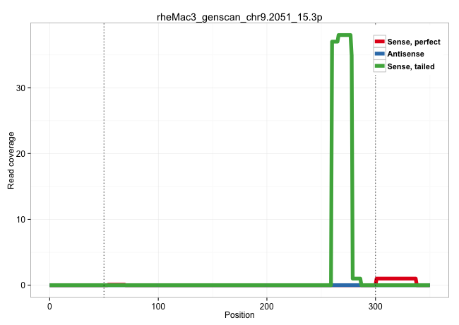 | CCCTAAAACAGTGTTCTCTCTGTTCTGCTGGGGCCAATCTGTCTTCCTCAGTGGGTGGGGCTGCAGGAAGGGCTGGATGACACATCAGGGTCCAGTGGGTGTGGTGCCCCCAGGCCTAGAGATGGGTCCTGGGCACTCCAACCCTGACATTTGAGGTTCCGGGTCCAGGCCACTGAGCCCGCTGGCCTTTGAGGATCCTTGCAGCCACCAGGCCCCGTGGGACCCAGCCACCCACATGGCCAGAAAGGAAGGGTCAGGCTGCCTTGTACAGGGCTGTGATAACCACGGGCCCCATTCCAGGGAGGATCGTGTAGGATTCTCTGTGCTCCAGAGGAGTCCTGCATTTCGGC ........................................................................................................................................................................................................((((((....((((..(((((.........)))))..))))......((....)).))))))........((((((((.....))))).))).......................................................... ........................................................................................................................................................................................................201................................................................................................300................................................ | Size | Perfect hit | Total Norm | Perfect Norm | SRR553578(SRX182784) source: Cerebellum. (Cerebellum) | SRR553577(SRX182783) source: Frontal Cortex. (Frontal Cortex) |