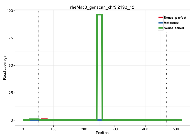 | AAGGGAGTGCTAGTTTGGGCTGTCACTCTAGGACAGAGAGCAAAAGAAAGGTGCGAGGGCACTCTGACTGGGTGACAACGCCCTTTCTACCTATAAGTGTCCTGAATGATTTAACCCCAGGGTCTTGGCTGGCCCAGTAGTTTGGCTGCTTCTACTCTGCAAAAAATACCCAGTTTGCCAGGGATTTCTGCCCCCTAAAGACATCGGGCCAGGCTTCAAGACATTTCTCTGCCTCCATTTGTCTGTGTGACTGTGAGCAAATTACTTAACCTCTCTGAACCTCAGTTTTCTGATCTATAAAATGAAGATGCTAATAGCAGCCGCCTCCGAGGGATTCTGGGAGGATAAAGAAAATGCTGTATGTGAAACCCCTCTGAGAGCTGGGACCTGCATTCAATATCATTCTTTTTTTCTTCTCCCTGTCACTGCTCACTGTTGATTTGGTTTGCTCTGTCCTTCCTTTGGTAAGGCTGGAAAAGAGGAACAGGAGGGCATGGAAGAAAGCCCTCAATCAGTGGG .......................................................((((((((..((..(((((....)))))..))........))))))))..................((((((((((((((.((((..(((......)))..))))............((((...((((.........))))..))))...)))))))...))))))).......(((...(((..(((.....))).))).))).................................................................................................................................................................................................................................................................... .......................................................56..............................................................................................................................................................................................................264............................................................................................................................................................................................................................................................. | Size | Perfect hit | Total Norm | Perfect Norm | SRR553581(SRX182787) source: Testis. (testes) | SRR553607(SRX182813) source: Testis. (testes) | SRR553579(SRX182785) source: Heart. (Heart) | SRR553605(SRX182811) source: Frontal Cortex. (Frontal Cortex) |