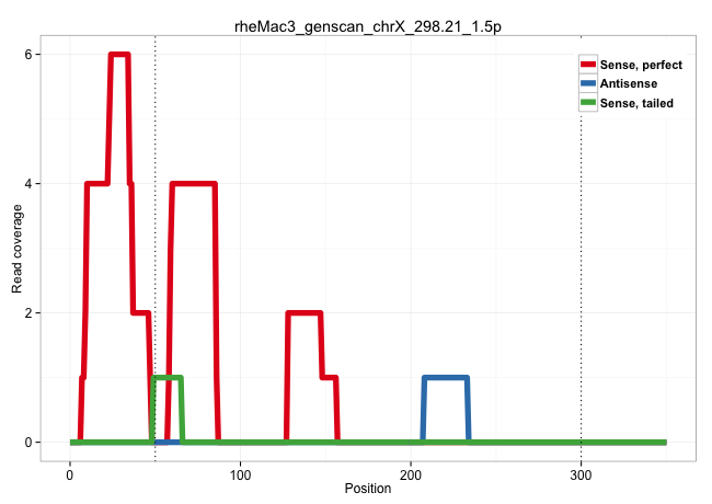 | CTGGCACCACCAAAGGACACTCAATCCACAAGAGCGCAGCATCCGACCAGGTTGTCACTGAGAAGATGTTTATTTTGGTCAGTTGGGTTTTTATGCATTATACTTAGTCAAATGAAATGTGGCTTCTGTACTCATTGTCCGGAGCTGCTTCCCCATCACCTGGGTGTCATCTGGTCCTGGTAAGAGGAGTGCGTGGCTCACCAGGCCCCCCTGTCACCCATGACAGTTCATTCAGGGCCAATTGGGCAGTCGTGGTTGGGAACACAGCATTTCAAGTGTCACTTTATTTCATTCGGGCCCCACCTGCAGCTCCCTTGTTCCCCAGCCTCTTTCCTTTCGAGTTTATTCCA ............................................(((((((....((((....)).)).....)))))))....((..((((((..((((....))))...)))))).(((((.((((.((.....)).)))))))))..))...................................................................................................................................................................................................... ............................................45.........................................................................................................152.................................................................................................................................................................................................... | Size | Perfect hit | Total Norm | Perfect Norm | SRR553581(SRX182787) source: Testis. (testes) | SRR553579(SRX182785) source: Heart. (Heart) | SRR553578(SRX182784) source: Cerebellum. (Cerebellum) | SRR553607(SRX182813) source: Testis. (testes) |