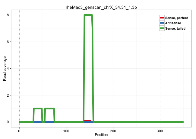 | TTAAACCACTTGCCCCCGACAGTGTGATATTCTCTCCCTATCTCGTTCGAATTTCCATTTCGATTTTAAAAATTGGGGAGAGAAGTTTTGTGTATGGTAAATTATGTGATGAGCACGAACTATTTGAATCCTGGCAGCAGAAGACCCTTTGGAGGGTGGTGGAAACCACTGCGTTTTATTTAATTCCGTCGGGCTGAGGGTCAGAAGGGAGAGGGGAAAGCGGTCGTAAGAAACCACGGATGTGCGTGTGCCGGCTCAAAGCCGGGAATCCACTAGTAAACACATCTTCTTGTATTTAAGGGCCTGCGGCACCGAAGCCGGGACTTGGGGTGGCCTGCCTGGGAGGGGGC | Size | Perfect hit | Total Norm | Perfect Norm | SRR553605(SRX182811) source: Frontal Cortex. (Frontal Cortex) | SRR553577(SRX182783) source: Frontal Cortex. (Frontal Cortex) | SRR553606(SRX182812) source: Kidney. (Kidney) |