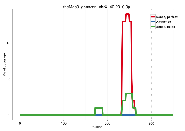 | AGGCTGTGTTCACTGTCTGTGACTTCCTCATGCTCCCCTCTGTTGGTTTTCATAGATTTCTAGCTGACTCAGGTGCTTGGTATGTAGCTTGGACAGGGGCAGCAGATGGTAGGGGTTGAGGGCCAGGCCCATTTCTCACTTGACTCCCCAACATTTTACAGAGCAAGAAACTGAGGGACTCAGAAGGTTTGAGTGCCTGGCCAGGGTCACAGAGCTAGCCCGGATTAGATGGGATGGAGTGAGGGACTGAAAGGTAGGTGGGCACTTTTCCTGACCTTGGCCTACCTCCCCTCACTCCAGCTATGGAGACATGGTGCCCAGCACCATTGCTGGCAAGATTTTCGGGTCCA .............................................................................................................................................................................(((.(((((((...))))))).))).(((....((((....(((.((((.......)))).))).))))...(((....))).)))........................................................................................... .......................................................................................................................................................................168........................................................................................259......................................................................................... | Size | Perfect hit | Total Norm | Perfect Norm | SRR553577(SRX182783) source: Frontal Cortex. (Frontal Cortex) | SRR553578(SRX182784) source: Cerebellum. (Cerebellum) | SRR553605(SRX182811) source: Frontal Cortex. (Frontal Cortex) | SRR553606(SRX182812) source: Kidney. (Kidney) |