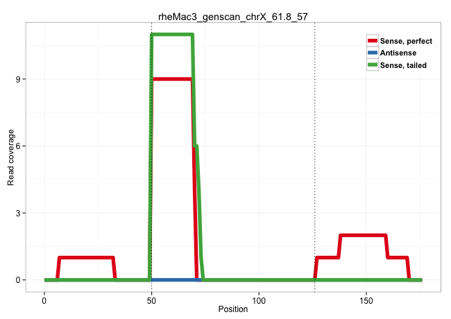 | AAGTGAGCCCTGAGTTTCTGGCTGCCCTGCCTCCAGCTATTCAGGAGGAAGTATGTGAGCGGGAAGGTGGTGGGGCCAGGCTGCCTGGCAGGAGAAATGCCCTCATTGACTTCTTCTGCTCCATAGGTACTGGCACAGCAGAGAGCTGAGCAGCAGCGACGAGAACTGGCACAGAA ...................................................((((.((((((((((..((((((((....((.((.....))))....)))).))))..))))..))))))))))................................................... ..................................................51.........................................................................126................................................ | Size | Perfect hit | Total Norm | Perfect Norm | SRR553578(SRX182784) source: Cerebellum. (Cerebellum) | SRR553605(SRX182811) source: Frontal Cortex. (Frontal Cortex) | SRR553579(SRX182785) source: Heart. (Heart) | SRR553577(SRX182783) source: Frontal Cortex. (Frontal Cortex) | SRR553606(SRX182812) source: Kidney. (Kidney) | SRR553581(SRX182787) source: Testis. (testes) | SRR553580(SRX182786) source: Kidney. (Kidney) |